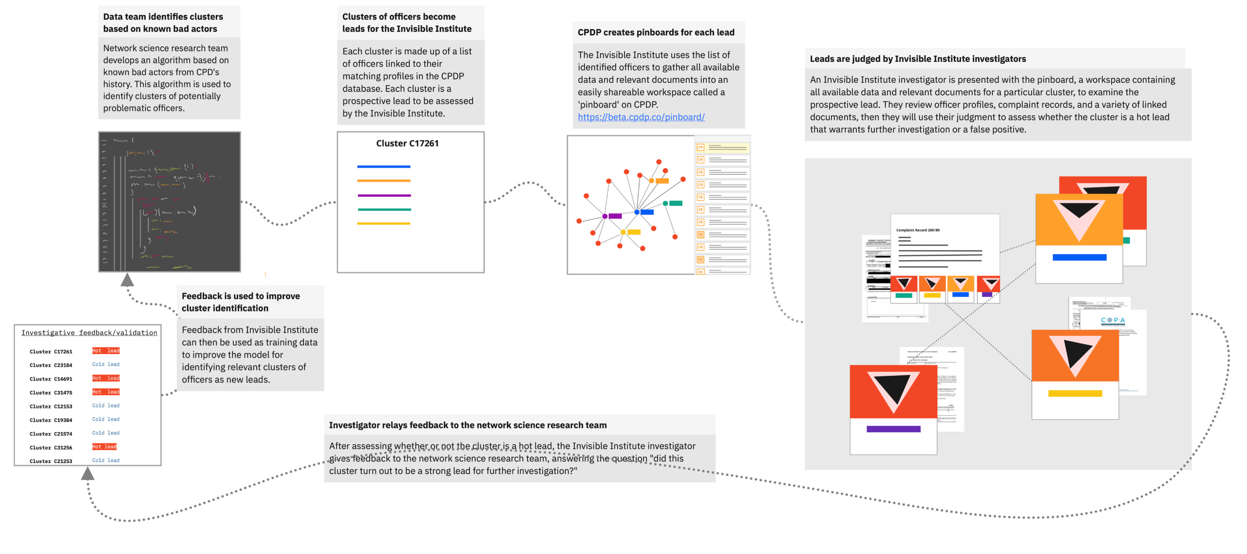 As part of a collaboration between the research team at Northwestern University's Neighborhood & Network Initiative and the journalism team at the Invisible Institute, PDW helped design a new investigative methodology and build interactive tools for exploring networks of police officers who were repeatedly co-accused of misconduct.